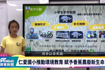 屏東縣仁愛國小推動環境教育,關注香蕉盛產及農業廢棄物問題,老師帶領學生從產地參訪、發現問題到提出解方,以「讓香...