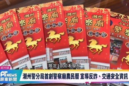 潮州警分局為提升治安與交通安全等各項政令宣導,攜手潮州警友辦事處首度印製「潮州警察廟農民曆」共1000本,除了...