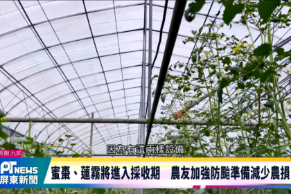 鳳凰颱風逼近,農民嚴陣以待,現高樹蜜棗已長至中果期,農民除擔心強風豪雨會毀壞溫網室設備,也怕會有落果情形,只能...