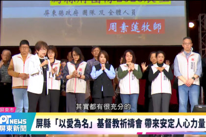 屏東縣政府已連續12年推動「以愛為名」宗教聯合祈福活動,今年基督教場祈禱會由縣府團隊與屏東眾教會共同舉行。透過...