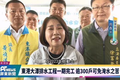 屏東縣東港鎮大潭里,位處地層下陷區,過去每逢大雨必淹水,影響戶數高達3百戶人家,縣府近年爭取中央支持,推動排水...
