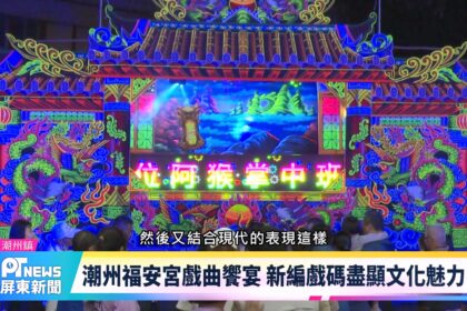 為恭祝福德正神聖誕,潮州鎮公所邀請阿猴掌中班在福安宮連演兩晚。表演團隊結合「靝馬潮興隆」年度主題翻新劇碼,以震...