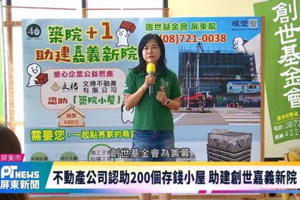 創世基金會為籌建嘉義新院,推動「築院+1」計畫,民眾只要捐款600元再加1元,就能把木製存錢小屋帶回家,屏東一...