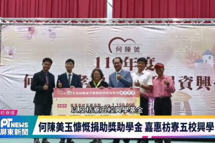 為了回饋鄉里,出生枋寮的何陳美玉女士,長年投入孝悌教育與公益助學,今年特別捐贈新臺幣 115 萬元的獎助學金,...