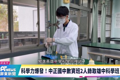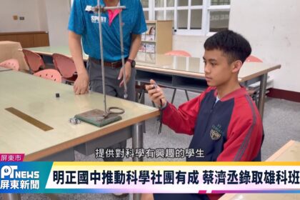今年屏東共有3名學生錄取雄中科學班,另外一位是自七年級即加入明正國中科學班的學生蔡濟丞,在校內完整培訓下打下紮...