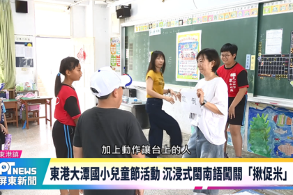 慶祝兒童節,東港鎮大潭國小,結合沉浸式閩南語教學,辦理「老師陪你玩瘋了」闖關遊戲,由教師們規劃八個遊戲主題關卡...