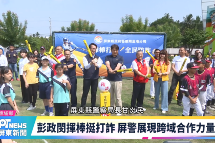 屏東里港警分局舉辦防詐記者會,找來中職傳奇球星彭政閔站台,還有國小學童用短劇演出詐騙情境,從小扎根識詐觀念。希...