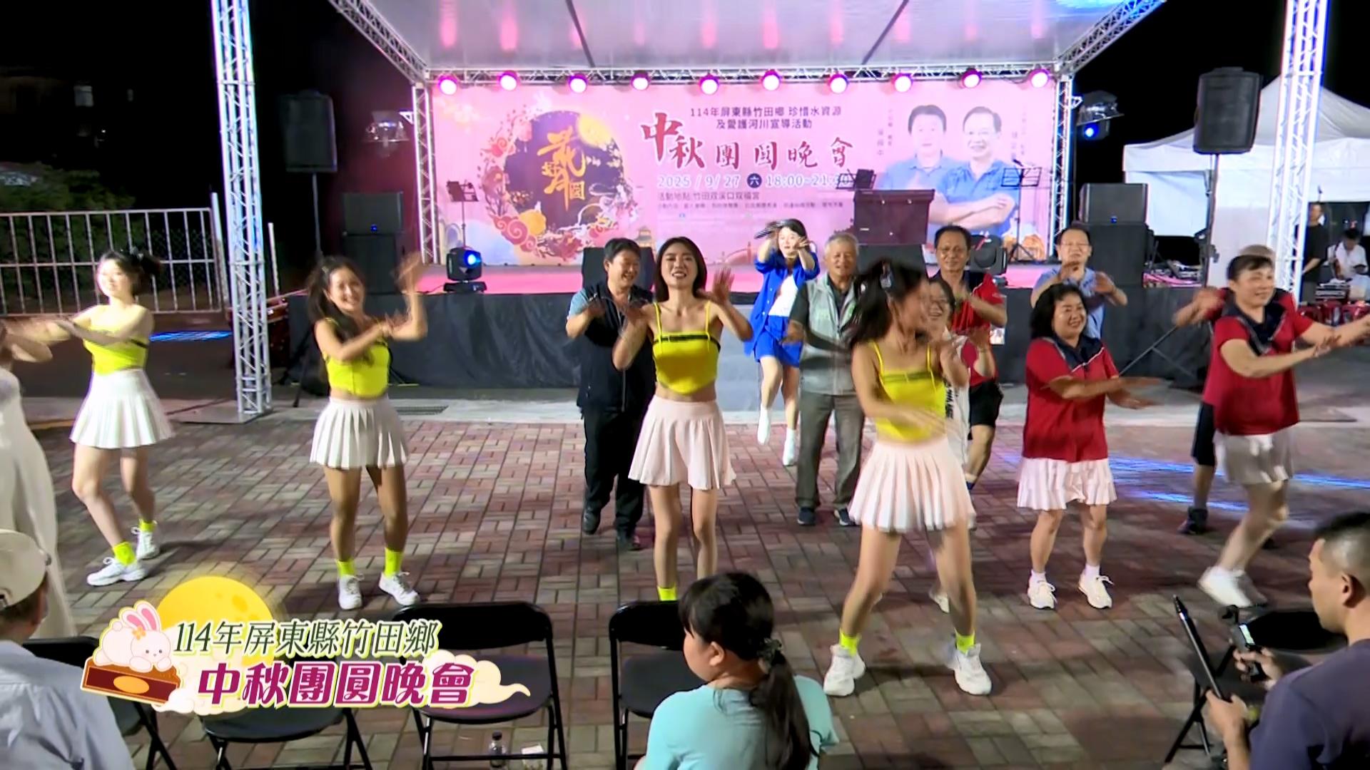 竹田鄉公所舉辦中秋節團圓晚會,安排社區表演、藝人搖滾樂團、摸彩等節目,氣氛歡樂。不僅凝聚社區情感,也讓民眾留下溫馨的中秋佳節回憶。