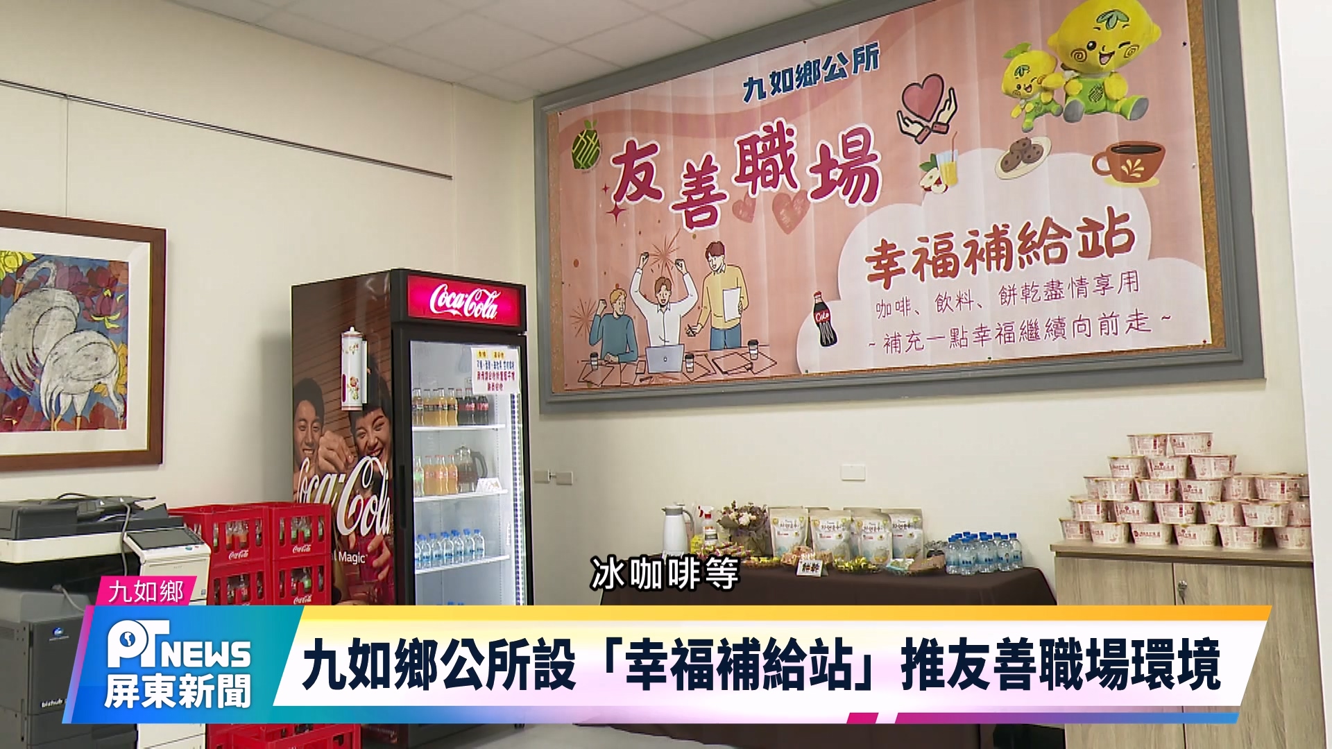 Home / 新聞 / 九如鄉公所設「幸福補給站」推友善職場環境新聞九如鄉公所設「幸福補給站」推友善職場環境2025-10-09 九如鄉公所近年積極打造友善職場環境新氛圍,並在所內設置「幸福補給站」架設飲品櫃,無論冰涼汽水、咖啡應有盡有,另外還有零食專區及泡麵區,要讓公所員工「充電」,希望帶給大家一個好的職場環境。 Share this ArticlePrevious Article「揹媽祖上北大武山」活動 跨越族群、信仰隔閡Next Article研究黑鳶毒殺案件生態分析 屏中地理奧林匹亞賽摘金hedy.pu Related Posts 瑞典館藏南排灣百年文物 重返獅子鄉展出48件巨作 2025-10-10 用AI照顧新生兒 黃永全發明「新手爸媽神器」 2025-10-10 連假潮州日式園區人氣旺 湧大批遊客走逛觀展 2025-10-10 Leave a Reply 取消回覆發佈留言必須填寫的電子郵件地址不會公開。 必填欄位標示為 *Comment顯示名稱 * 電子郵件地址 * 個人網站網址 在瀏覽器中儲存顯示名稱、電子郵件地址及個人網站網址,以供下次發佈留言時使用。