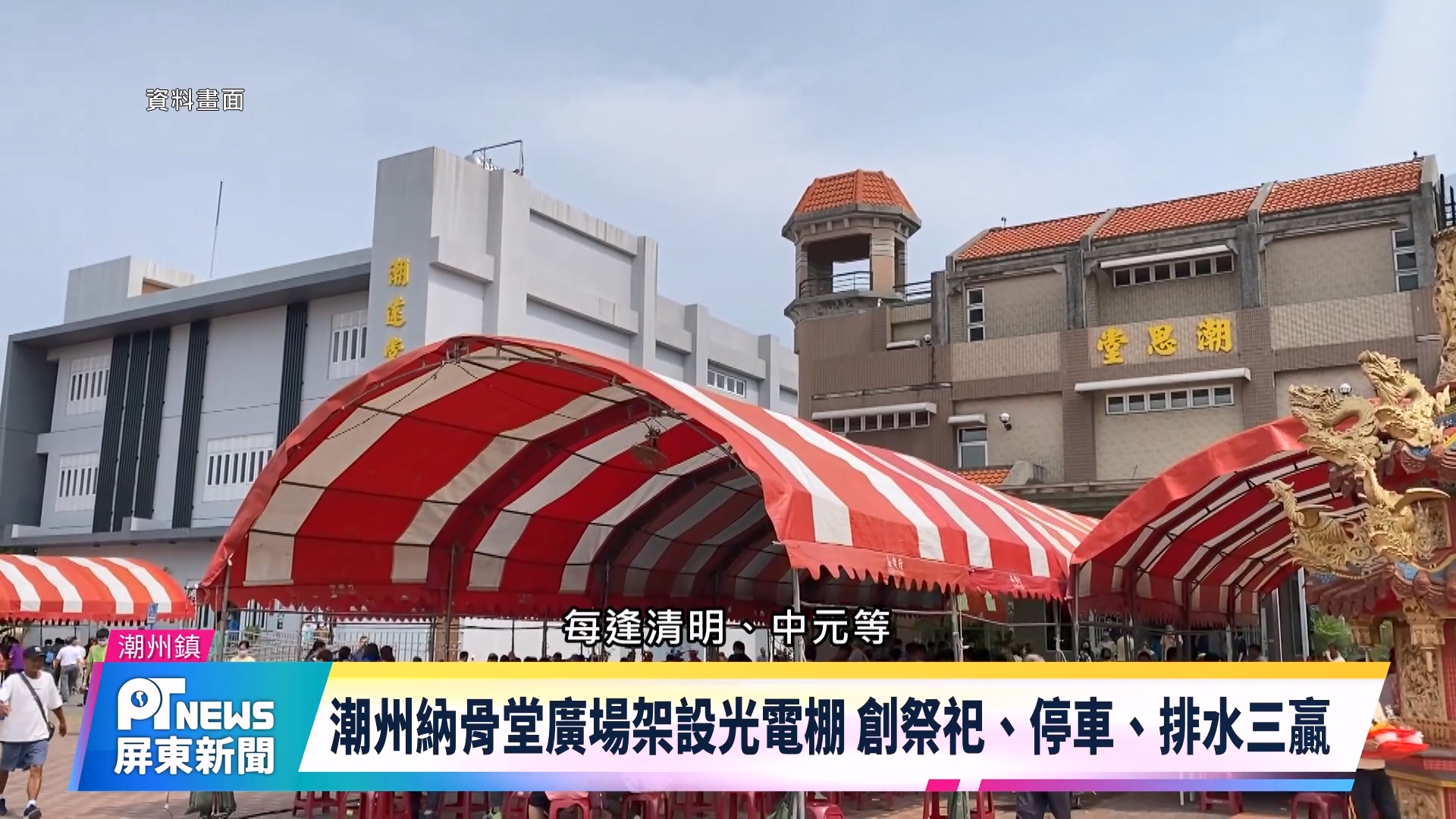 Home / 新聞 / 潮州納骨堂廣場架設光電棚 創祭祀、停車、排水三贏新聞潮州納骨堂廣場架設光電棚 創祭祀、停車、排水三贏2025-10-09 屏東縣潮州鎮第三公墓潮遠堂及潮思堂,公所為解決常年遇雨易淹問題,將原本堂前廣場,裝設接近五百坪的地面型光電板,因最低處仍高達2.8公尺,完全不妨礙進出,還能停車,在祭祀使用、整地排水及綠電回饋,創造三贏。 Share this ArticlePrevious Article研究黑鳶毒殺案件生態分析 屏中地理奧林匹亞賽摘金Next Article「CoEx世界可可豆卓越競賽」屏東業者入選前50名hedy.pu Related Posts 模型車玩家把興趣當工作 進駐屏東勝利星村 2025-10-09 家扶盃全國羽球賽開幕 650選手齊聚潮州熱血開打 2025-10-09 勉勵駕駛長服務貢獻 屏東優良駕駛選拔開跑 2025-10-09 Leave a Reply 取消回覆發佈留言必須填寫的電子郵件地址不會公開。 必填欄位標示為 *Comment顯示名稱 * 電子郵件地址 * 個人網站網址 在瀏覽器中儲存顯示名稱、電子郵件地址及個人網站網址,以供下次發佈留言時使用。