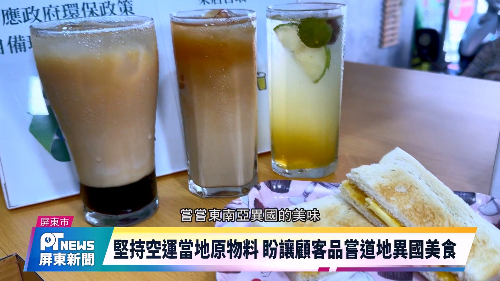 屏市飲品業者于書玫自國外返臺後,與先生在屏東定居創業,她不計高成本推出馬來西亞最受歡迎的三色奶、星馬奶及三酸水等特色飲品,以及號稱當地國民美食的咖椰吐司,希望讓顧客品嘗道地的東南亞飲食。
