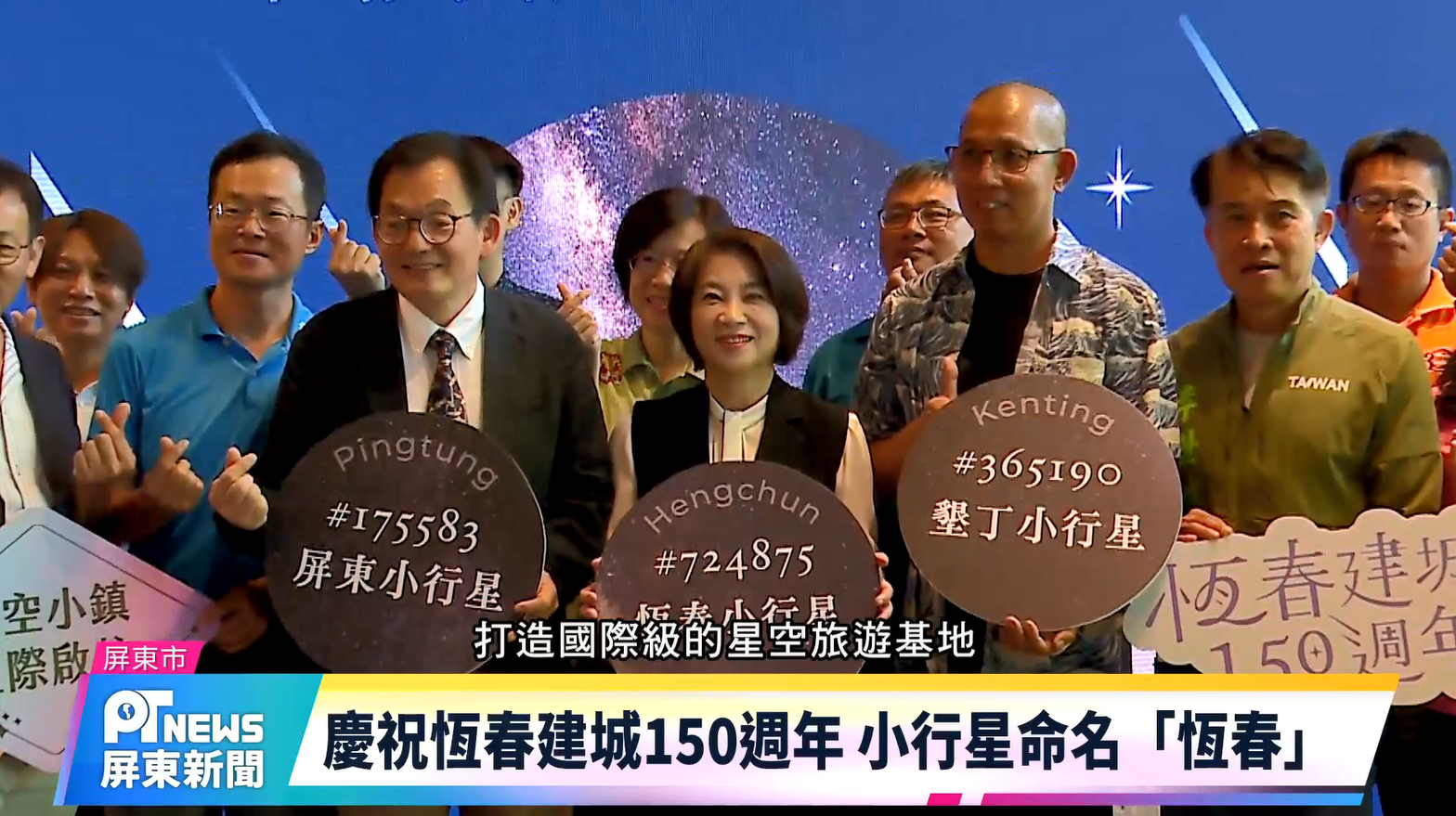 Home / 新聞 / 慶祝恆春建城150週年 小行星命名「恆春」新聞慶祝恆春建城150週年 小行星命名「恆春」2025-10-13 今年恆春建城150週年,國際天文學聯合會審查通過,第724875號小行星正式命名為「HENGCHUN(恆春)」,特別在屏東縣立圖書館總館舉行命名發布會,這是近10年來第3顆以屏東地名命名的天體讓屏東的故事不僅流傳於山海之間,更閃耀於星辰之中。 Share this ArticlePrevious Article屏縣府攜手春日鄉公所 舉辦力里圳百周年慶祝活動Next Article2025屏東獎頒獎 53件作品脫穎而出ju.yin Related Posts 「2025世界在屏東」匯聚異國文化魅力 化身小地球村 2025-10-13 潮和國小獲蘋果傑出學校認證 開啟數位轉型教育新里程 2025-10-13 2025屏東獎頒獎 53件作品脫穎而出 2025-10-13 Leave a Reply 取消回覆發佈留言必須填寫的電子郵件地址不會公開。 必填欄位標示為 *Comment顯示名稱 * 電子郵件地址 * 個人網站網址 在瀏覽器中儲存顯示名稱、電子郵件地址及個人網站網址,以供下次發佈留言時使用。