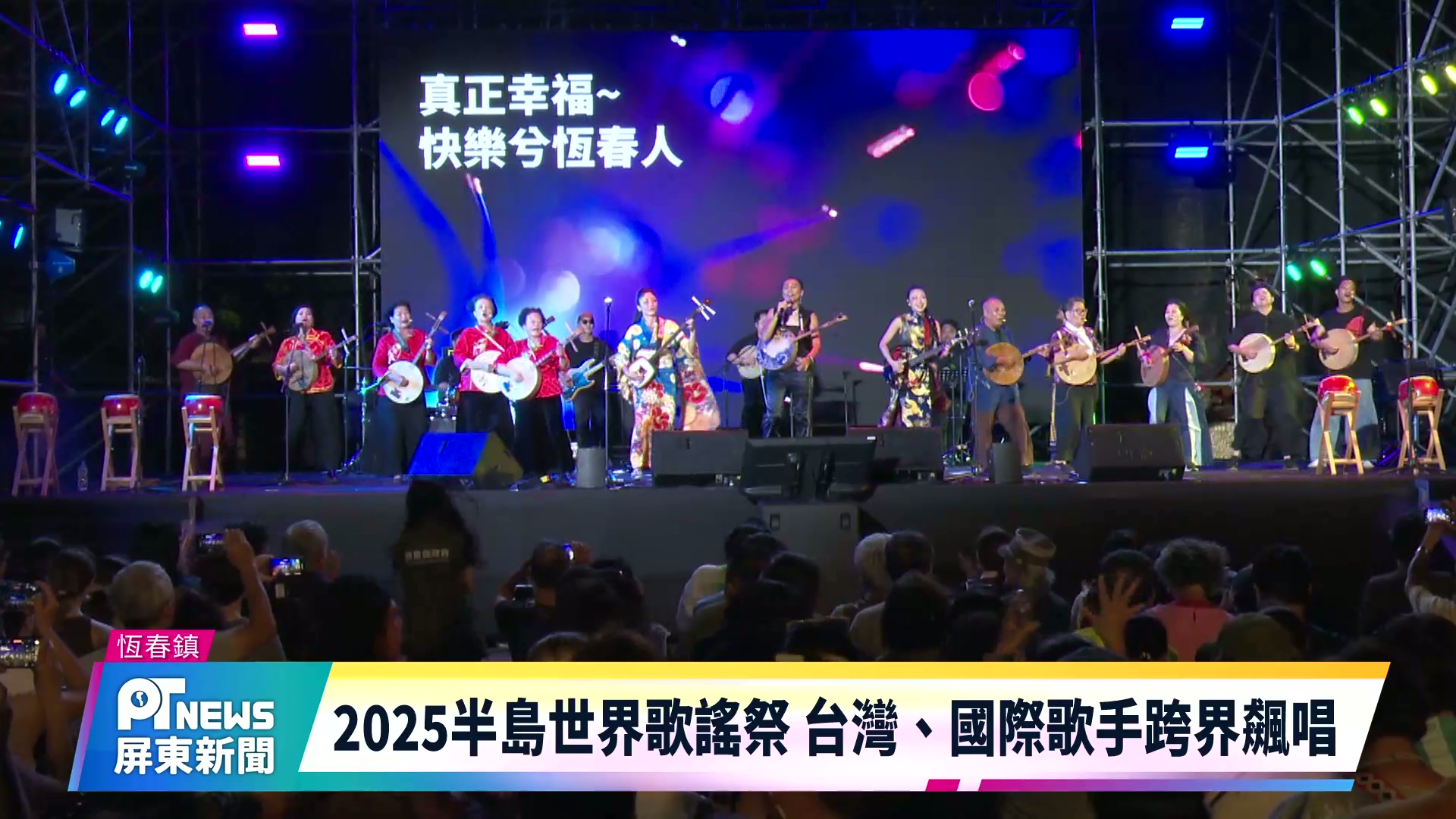 Home / 新聞 / 2025半島世界歌謠祭 台灣、國際歌手跨界飆唱新聞2025半島世界歌謠祭 台灣、國際歌手跨界飆唱2025-10-20 屏東年度盛事「半島世界歌謠祭」在恆春西門登場,今年以民謠結合搖滾的跨界飆唱模式,由金曲歌后戴曉君領軍,攜手民謠傳藝師、小朋友,以及來自澳洲、日本、美國的音樂好手,帶來耳目一新的音樂風暴,全場嗨翻天! Share this ArticlePrevious Article屏東首辦「熟齡社團嘉年華」50+橘世代專屬交流舞台Next Article屏縣表揚39對鑽石婚夫妻 共築溫暖家庭牽手逾60年hedy.pu Related Posts 屏縣敬老及博愛卡五大升級 點數翻倍、使用範圍擴大 2025-10-20 新住民學生媒體營進階班 教學員拍剪完成短影音作品 2025-10-20 婚姻典範!屏東市公所表揚17對鑽石婚夫妻 2025-10-20 Leave a Reply 取消回覆發佈留言必須填寫的電子郵件地址不會公開。 必填欄位標示為 *Comment顯示名稱 * 電子郵件地址 * 個人網站網址 在瀏覽器中儲存顯示名稱、電子郵件地址及個人網站網址,以供下次發佈留言時使用。