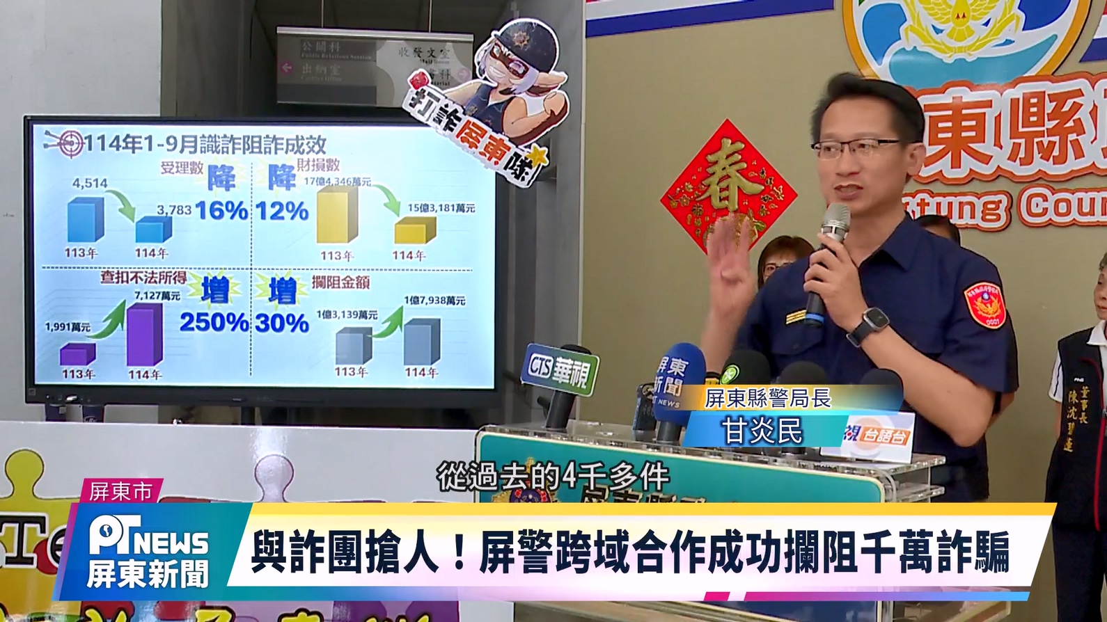 Home / 新聞 / 與詐團搶人!屏警跨域合作成功攔阻千萬詐騙新聞與詐團搶人!屏警跨域合作成功攔阻千萬詐騙2025-10-30 屏東縣警察局推動「與詐團搶人」防詐策略,攜手宗教、金融與企業界,成功攔阻詐騙案件,守住民眾近4億元財產。縣警局召開跨界聯防記者會,呼籲各界加入「打詐屏東隊」,一起來杜絕詐騙產業鏈。 Share this ArticlePrevious ArticleEYE台灣生活週報Next Article融合美食與藝術 沉浸式盛宴「土水動靜」原百貨開席tingshih Related Posts 融合美食與藝術 沉浸式盛宴「土水動靜」原百貨開席 2025-10-30 2025戀車潮現「名車搶先看」復古收藏車陸續登場 2025-10-30 恆春國中體育館動土 盼打造在地鄉親重要運動空間 2025-10-30 Leave a Reply 取消回覆發佈留言必須填寫的電子郵件地址不會公開。 必填欄位標示為 *Comment顯示名稱 * 電子郵件地址 * 個人網站網址 在瀏覽器中儲存顯示名稱、電子郵件地址及個人網站網址,以供下次發佈留言時使用。