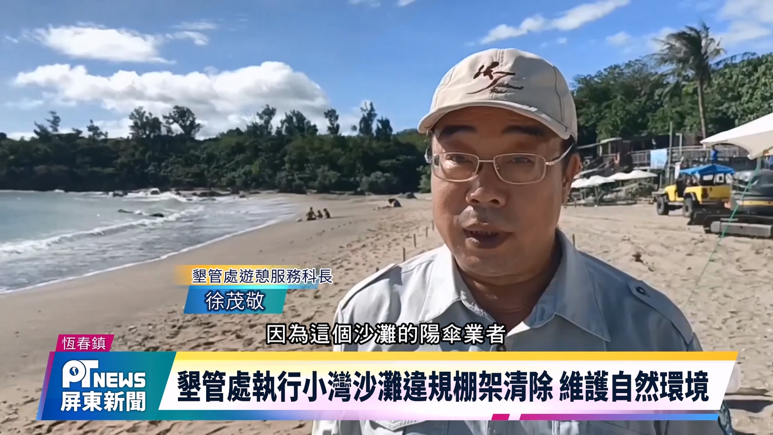 Home / 新聞 / 墾管處執行小灣沙灘違規棚架清除 維護自然環境新聞墾管處執行小灣沙灘違規棚架清除 維護自然環境2025-11-07 為維護墾丁小灣遊憩區,整體的環境品質與公共使用秩序,墾管處針對部分陽傘業者,在沙灘後方的珊瑚礁林區周邊,違規搭設收納棚架或堆放器具的情形,現場查察與多次溝通協調,並且依規定進行清除作業! Share this ArticlePrevious Article配合屏縣府辦敬老卡送超夯文創品 潮鑰匙圈全被拿光Next Article114年屏東縣運登場 逾萬人參與競賽展現運動活力tingshih Related Posts 114年屏東縣運登場 逾萬人參與競賽展現運動活力 2025-11-07 配合屏縣府辦敬老卡送超夯文創品 潮鑰匙圈全被拿光 2025-11-07 結合鎮內大型藝文活動 潮州警分局加強反詐宣導 2025-11-07 Leave a Reply 取消回覆發佈留言必須填寫的電子郵件地址不會公開。 必填欄位標示為 *Comment顯示名稱 * 電子郵件地址 * 個人網站網址 在瀏覽器中儲存顯示名稱、電子郵件地址及個人網站網址,以供下次發佈留言時使用。