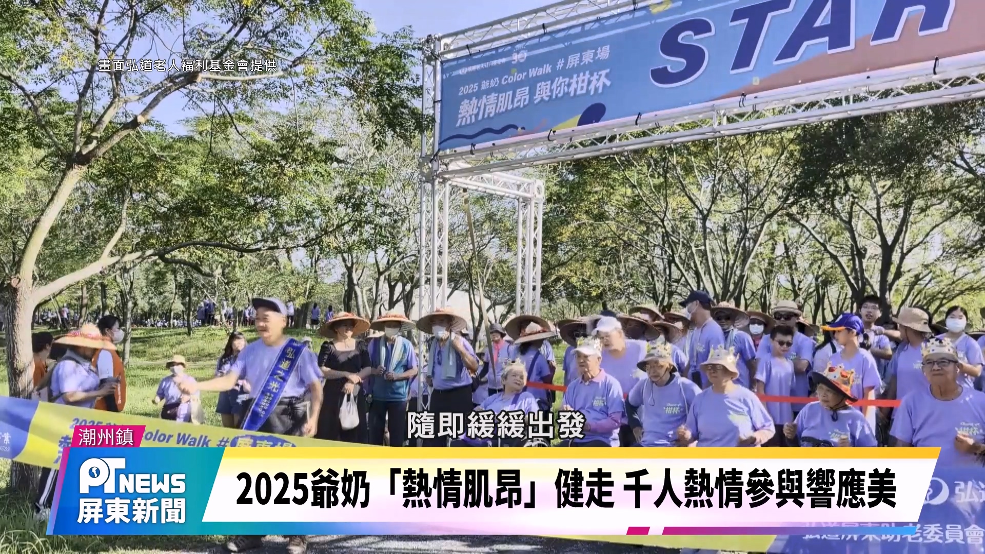 台灣將正式邁入「超高齡化社會」,為積極推動運動預防肌少症以及高齡友善環境,弘道老人福利基金會屏東服務處,連續第七年舉辦千人健走活動,以「2025爺奶Color Walk-熱情肌昂」為主題,吸引千人到場,有些爺奶更五代同場參與,場面熱鬧非凡。
