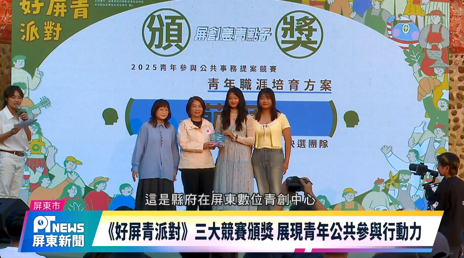 鼓勵青年創新提案展現公共參與行動力,屏東縣政府推出「屏創意青點子公共提案」、「屏東青年社會創新競賽」、「極屏獎」三大競賽,總獎金高達175萬,縣府在屏東數位青創中心戶外草皮舉辦好屏青派對頒獎,超過300名青年、50組團隊齊聚一堂,展現青年在創業、公共參與與社會創新的多元成果。