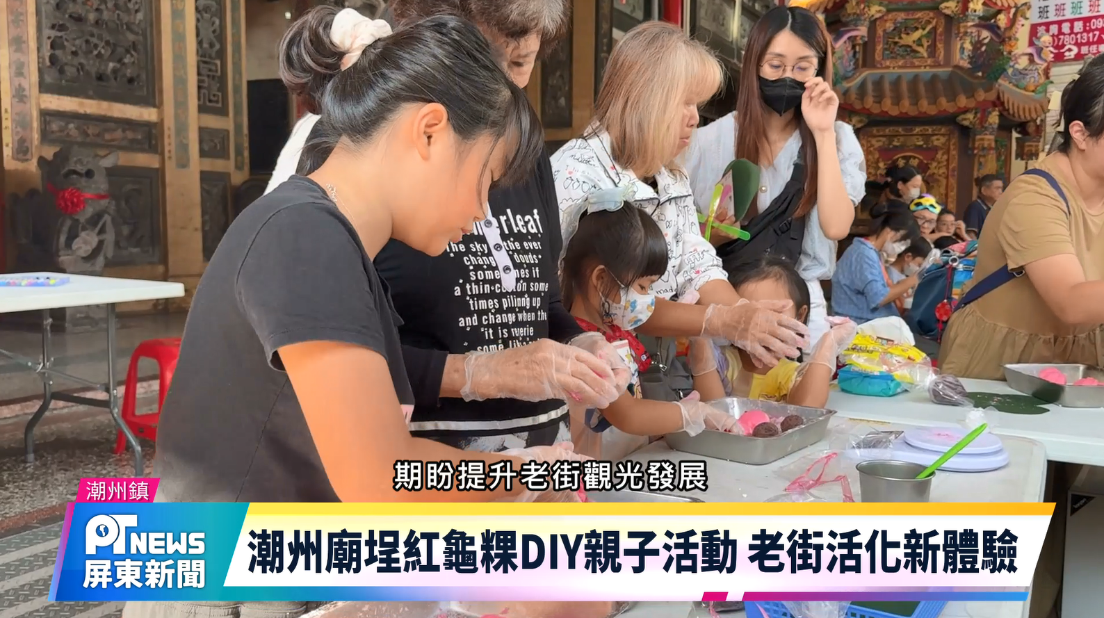 Home / 新聞 / 潮州廟埕紅龜粿DIY親子活動 老街活化新體驗新聞潮州廟埕紅龜粿DIY親子活動 老街活化新體驗2025-11-26 潮州鎮近年為活化老街觀光,除了加入公民審議過程,也結合大小活動安排,提升建基路的「踩踏率」近期在三山國王廟埕辦理的紅龜粿DIY,就相當受到親子青睞,期盼未來還能持續辦理,不僅讓老街再生,也促進地方觀光發展。 Share this ArticlePrevious Article屏東冬季氣候涼爽 高樹青農露天試種多種櫛瓜Next Article屏東首間「傷口照護中心」東港輔英醫院跨科整合照料ju.yin Related Posts 林邊仁和國小融合環保理念 獲屏東舞蹈比賽優等 2025-11-26 客家樂團攜手東勢國小 發表客語歌「捉迷藏」 2025-11-26 屏東首間「傷口照護中心」東港輔英醫院跨科整合照料 2025-11-26 Leave a Reply 取消回覆發佈留言必須填寫的電子郵件地址不會公開。 必填欄位標示為 *Comment顯示名稱 * 電子郵件地址 * 個人網站網址 在瀏覽器中儲存顯示名稱、電子郵件地址及個人網站網址,以供下次發佈留言時使用。