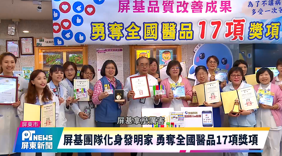 屏東基督教醫院落實「以病人為中心」理念,將第一線臨床經驗轉化為創新解方的卓越實力,發明一格一色導檢架、血液檢體混合器等工具,近期於全台各項醫療品質競賽中大放異彩,一舉囊括17項獎項,屏基表示,獲獎不只是榮耀,更讓醫療品質真正落實在每一次照護細節中。