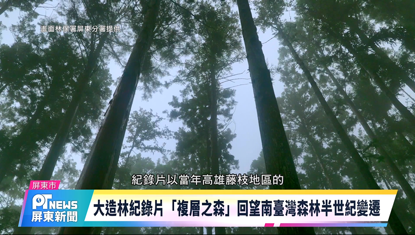1965至1976年間,前林務局在聯合國糧農組織協助下,推動全台大規模「林相變更」政策,掀起一波「大伐木、大造林」的林業浪潮,深刻改寫戰後台灣山林樣貌,林保署屏東分署歷時多年田調、訪談,完成《複層之森》紀錄片拍攝,希望讓觀影者,傾聽藤枝林間逐漸遠去卻依然迴盪的聲音,思索森林治理與未來可能。