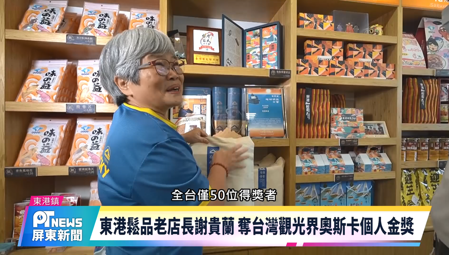 Home / 新聞 / 東港鬆品老店長謝貴蘭 奪台灣觀光界奧斯卡個人金獎新聞東港鬆品老店長謝貴蘭 奪台灣觀光界奧斯卡個人金獎2026-01-06 東港老字號鬆品店的店長-謝貴蘭,榮獲今年度才剛頒布的交通部觀光署,台灣觀光界奧斯卡獎「台灣觀光金獎」肯定,且是競爭最激烈的「個人獎」成為全台灣唯50位的觀光產業菁英之一! Share this ArticlePrevious Article大造林紀錄片「複層之森」回望南臺灣森林半世紀變遷Next Article屏縣春節送暖活動啟動 7545戶低收家庭受惠ju.yin Related Posts 竹田豆油伯×瑪利亞快樂襪聯名 盼公益禮盒做愛心 2026-01-07 潮州十六號公園大蛻變 鎮民溫馨有感大讚環境佳 2026-01-07 鵬管處推轄區冬令遊程 四重溪泡湯還加碼送好禮 2026-01-07 Leave a Reply 取消回覆發佈留言必須填寫的電子郵件地址不會公開。 必填欄位標示為 *Comment顯示名稱 * 電子郵件地址 * 個人網站網址 在瀏覽器中儲存顯示名稱、電子郵件地址及個人網站網址,以供下次發佈留言時使用。