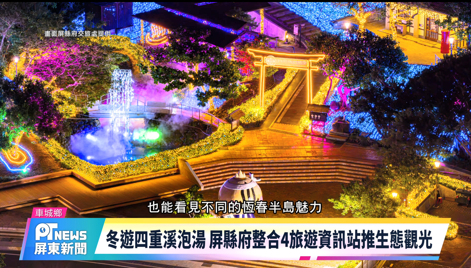 Home / 新聞 / 冬遊四重溪泡湯 屏縣府整合4旅遊資訊站推生態觀光新聞冬遊四重溪泡湯 屏縣府整合4旅遊資訊站推生態觀光2026-01-09 天氣越來越冷,近期不少鄉親到四重溪泡湯,也讓在地住宿、餐廳滿滿滿,屏縣府交旅處趁勢再推生態遊程,整合四個包括石門、牡丹、旭海、九棚旅遊資訊站,提供深度旅遊套裝,歡迎鄉親踴躍上網報名! Share this ArticlePrevious Article內埔一甲子食品公司 傳承與發揚古早味豆棗Next Article文創包裝新設計 佳冬農會系列加工品禮盒新亮相ju.yin Related Posts 枋寮彩虹藝鐵「猛男鴨」出沒 烤鴨專賣超人氣 2026-03-03 潮州清明祭祀活動 大型法會供鄉親追思祭拜 2026-03-03 臺南至善基金會攜手屏科大 發表生命教育系列繪本 2026-03-03 Leave a Reply 取消回覆發佈留言必須填寫的電子郵件地址不會公開。 必填欄位標示為 *Comment顯示名稱 * 電子郵件地址 * 個人網站網址 在瀏覽器中儲存顯示名稱、電子郵件地址及個人網站網址,以供下次發佈留言時使用。