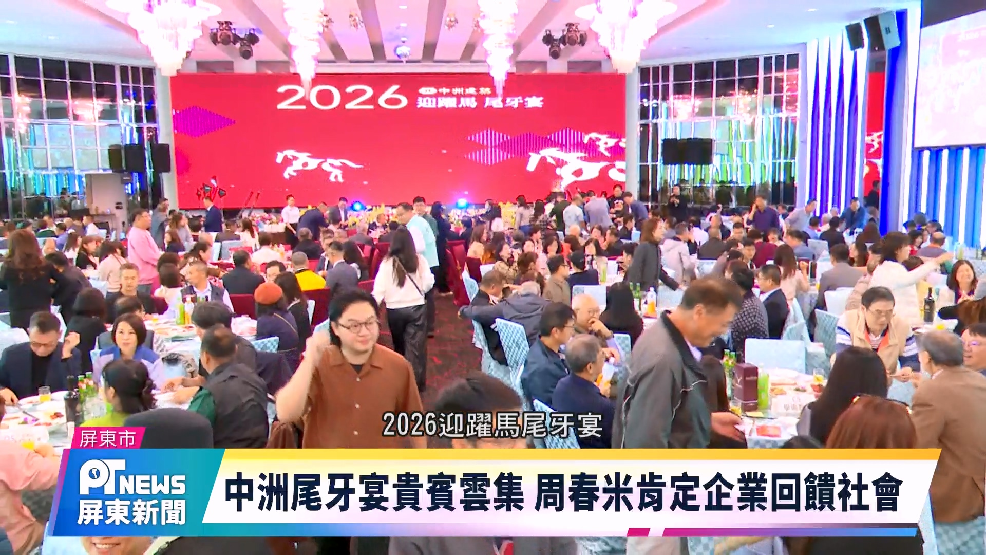 中洲建築舉辦年度尾牙宴,邀集產官學界貴賓、客戶及協力廠商齊聚一堂,共同歡慶一年的成果,現場氣氛相當熱絡。活動除了準備現金摸彩外,更安排藝人演出炒熱氣氛,包括孫淑媚、張涵雅、羅時豐以及陳勢安輪番登台,帶來多首經典歌曲,讓尾牙宛如小型演唱會般精彩,堪稱屏東最受矚目的尾牙盛會。