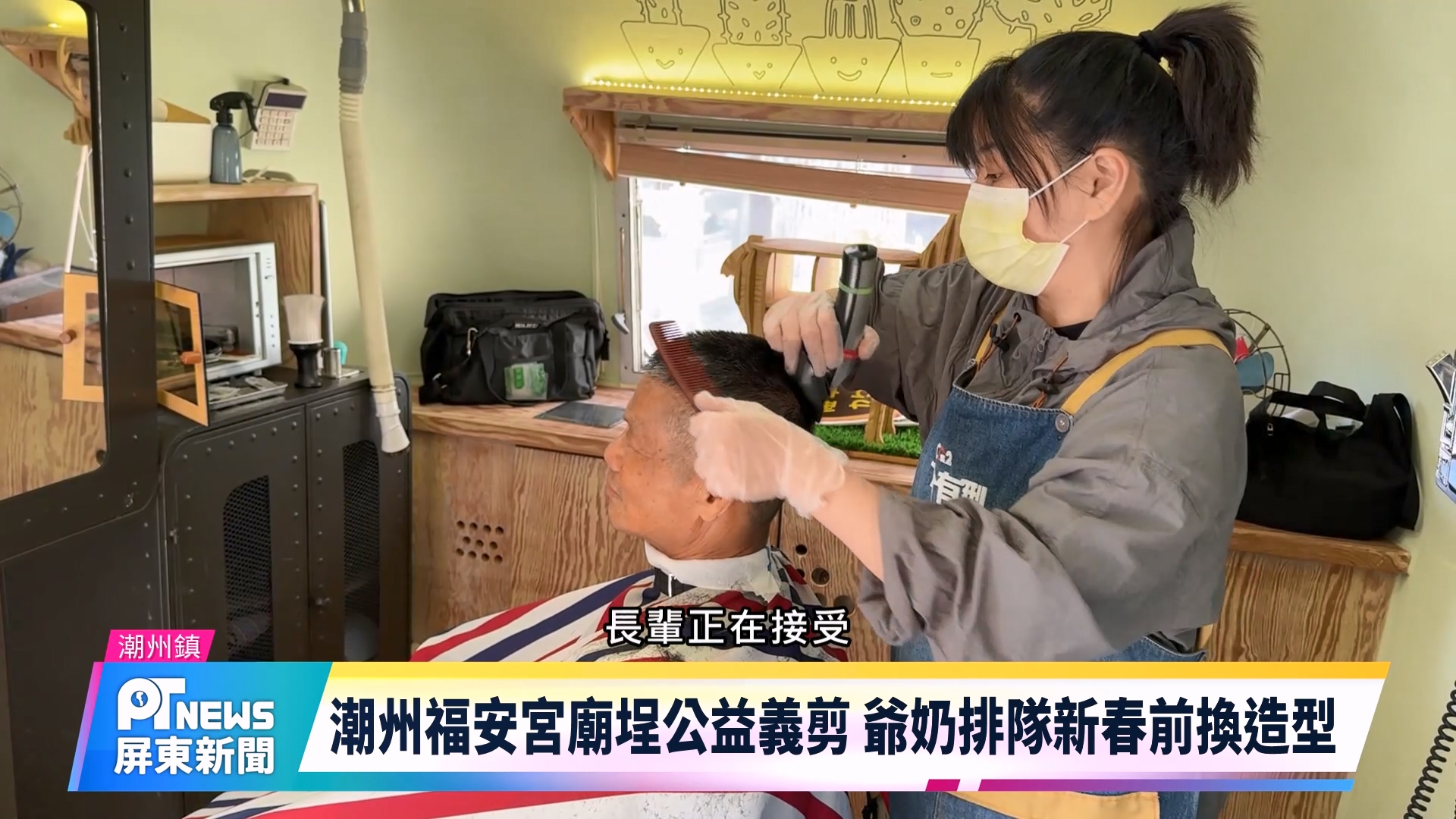 潮州鎮公所媒合新光保全、寶島義剪車在潮州福安宮廟埕廣場舉辦公益義剪,針對鎮內銀髮長輩與弱勢等鎮民朋友,提供義剪服務,讓大家在春節前夕整理儀容,容光煥發迎接嶄新的一年。