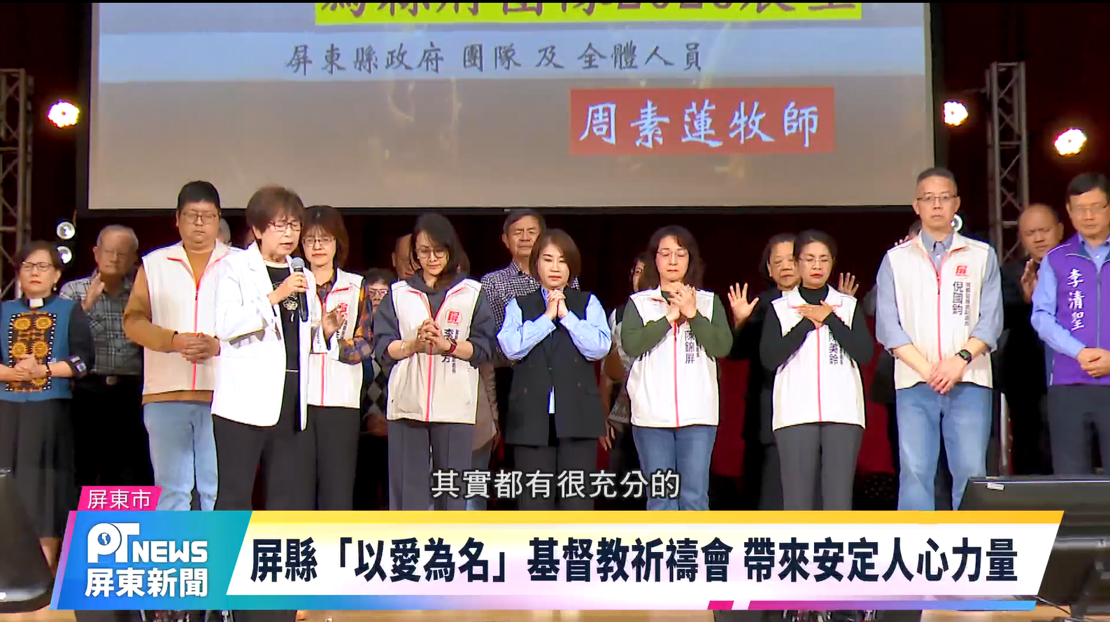 Home / 新聞 / 屏縣「以愛為名」基督教祈禱會 帶來安定人心力量新聞屏縣「以愛為名」基督教祈禱會 帶來安定人心力量2026-02-02 屏東縣政府已連續12年推動「以愛為名」宗教聯合祈福活動,今年基督教場祈禱會由縣府團隊與屏東眾教會共同舉行。透過宗教力量凝聚信心,為地方建設與縣民福祉祈禱,期盼持續為社會注入安定與正向能量。 Share this ArticlePrevious Article恆春出火地質公園啟用 水火共生地景展新貌Next Article中信兄弟屏東啟動春訓 領隊喊話:保持學習力ju.yin Related Posts 潮州光華國小全新PU跑道 打造安全、完善的運動場域 2026-04-13 屏東勝利星村「花漾宇宙」親子共創繽紛春日回憶 2026-04-13 屏東三大日音樂節 16組巨星接力開唱吸14.5萬人次 2026-04-13 Leave a Reply 取消回覆發佈留言必須填寫的電子郵件地址不會公開。 必填欄位標示為 *Comment顯示名稱 * 電子郵件地址 * 個人網站網址 在瀏覽器中儲存顯示名稱、電子郵件地址及個人網站網址,以供下次發佈留言時使用。