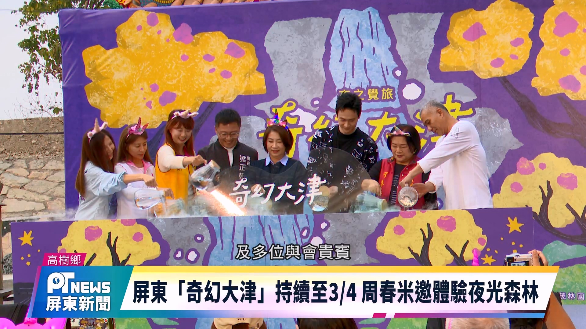 Home / 新聞 / 屏東「奇幻大津」持續至3/4 周春米邀體驗夜光森林新聞屏東「奇幻大津」持續至3/4 周春米邀體驗夜光森林2026-02-06 屏東縣高樹鄉年度的夜間藝術活動「奇幻大津」登場,活動將持續到3/4。縣長周春米邀請高樹子弟、雙金男星劉冠廷一同走進夜光森林,為活動揭開序幕。帶領民眾穿梭山林,展開結合自然與藝術的沉浸式旅程。 Share this ArticlePrevious Article多層次香料堆疊創意料理 屏市蔬食店顛覆味覺框架Next Article屏東市歸園第三納骨塔上梁!建造優質追思環境tingshih Related Posts 潮州鐵道園區新春造景 萌「馬」奔騰裝置藝術超吸睛 2026-02-06 屏東太空教育向下扎根「紙火箭」帶領學子實現航太夢 2026-02-06 屏東市歸園第三納骨塔上梁!建造優質追思環境 2026-02-06 Leave a Reply 取消回覆發佈留言必須填寫的電子郵件地址不會公開。 必填欄位標示為 *Comment顯示名稱 * 電子郵件地址 * 個人網站網址 在瀏覽器中儲存顯示名稱、電子郵件地址及個人網站網址,以供下次發佈留言時使用。
