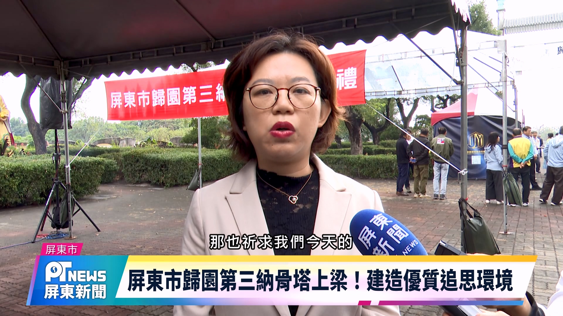 屏東市歸園第三納骨塔工程舉行上梁典禮,祈求工程順利,能如期如質在今年完工啟用。市長周佳琪表示,歸園第三納骨塔的興建是市政重要規劃之一,盼能提供市民更完善的安厝服務。而這項工程的推動,不僅展現市公所持續改善公共設施的決心,也象徵屏東市在民生建設上的積極作為,為地方社區注入新的安心與信任。