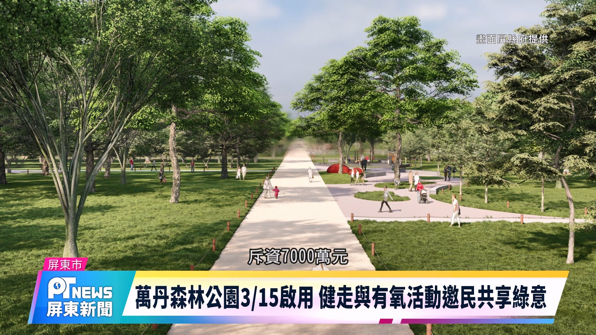 由屏東縣政府打造的「萬丹森林公園」,將於3月15日正式啟用。為慶祝公園落成啟用,縣府當天特別規劃舉辦「萬丹春天健走嘉年華」及「2026屏東有氧巡迴列車」兩大活動,邀請民眾攜家帶眷走進森林、親近自然,在春日暖陽中感受萬丹嶄新的綠意空間與健康活力。