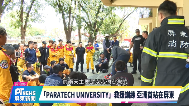 為深化重大災害救援專業並拓展國際實務交流,全球頂尖搜救設備公司「PARATECH UNIVERSITY」跨越半個地球,亞洲首場訓練活動正式選定於設備完善的「屏東縣政府消防局特搜大隊基地」,有來自美國、英國及亞洲多個國家等八國專業搜救菁英齊聚屏東,精進救援技術,提升面對各類型災害的應變能力。