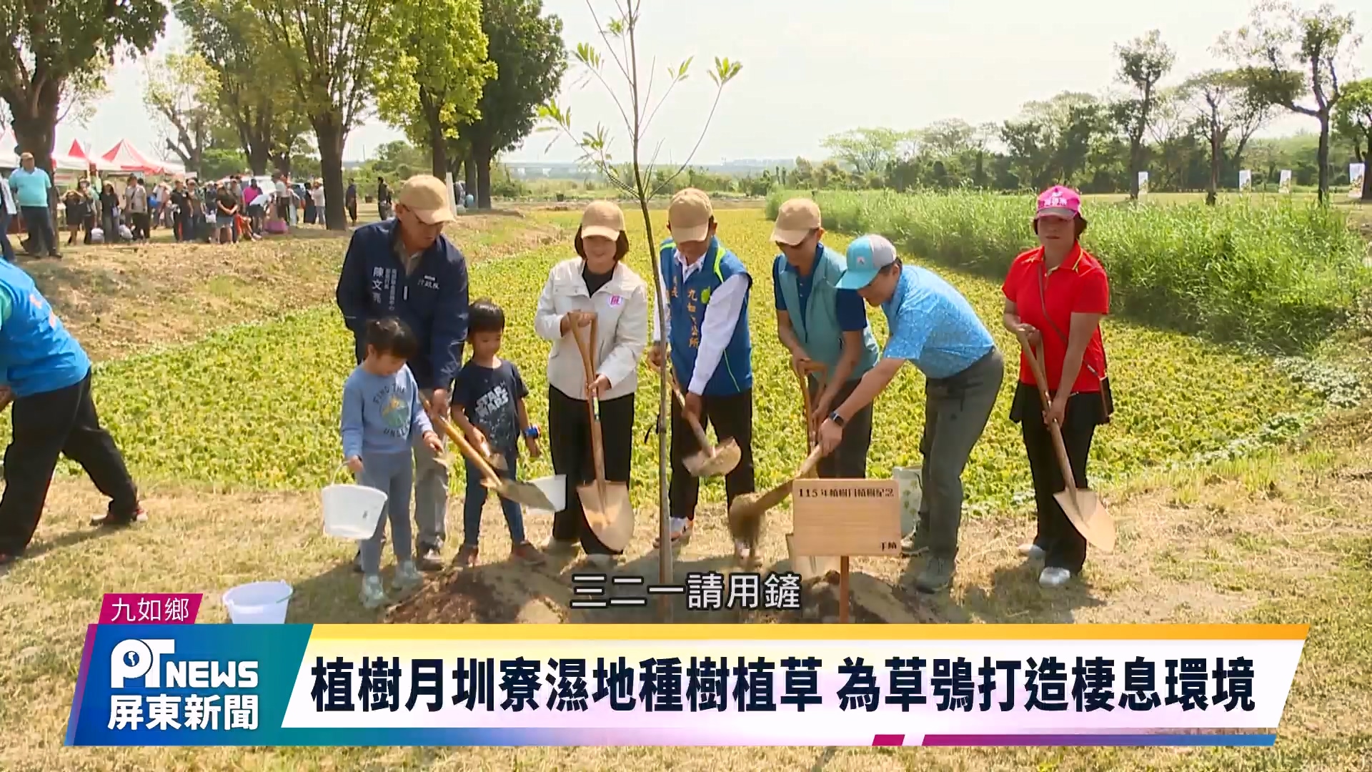 響應植樹月及國際森林日,屏東縣政府聯手林業及自然保育署屏東分署在九如鄉萬年濕地群圳寮濕地舉辦植樹活動,吸引許多家長帶著孩子共同參與,現場氣氛溫馨熱鬧,縣長周春米表示,活動結合植樹與植草行動,為瀕危物種「草鴞」打造更安全的棲息環境,也展現全民守護自然的行動力。