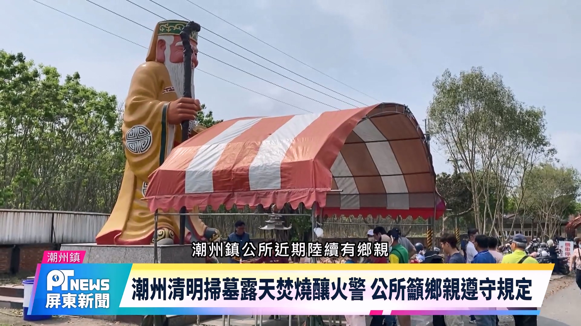 Home / 未分類 / 潮州清明掃墓露天焚燒釀火警 公所籲鄉親遵守規定未分類潮州清明掃墓露天焚燒釀火警 公所籲鄉親遵守規定2026-03-24 下週迎來清明節,潮州鎮公所近期在假日發現,不少提早掃墓的鄉親,為求方便,違規露天焚燒廢棄物及雜草,引發火警,除了受罰也相當不環保又危險,呼籲鄉親朋友遵守規定,也鼓勵將先人起掘進堂。 Share this ArticlePrevious Article日本Bluestone二度造訪潮州 廟埕獻藝續寫台日音樂情緣Next Article屏市兒童嘉年華會 千禧公園歡樂登場hedy.pu Related Posts EYE台灣生活週報 2026-03-18 「植樹傳愛・屏東好物」植樹節活動 2026-03-16 白色情人節遊潮庄 主題燈飾將延長至節日過後 2026-03-04 Leave a Reply 取消回覆發佈留言必須填寫的電子郵件地址不會公開。 必填欄位標示為 *Comment顯示名稱 * 電子郵件地址 * 個人網站網址 在瀏覽器中儲存顯示名稱、電子郵件地址及個人網站網址,以供下次發佈留言時使用。