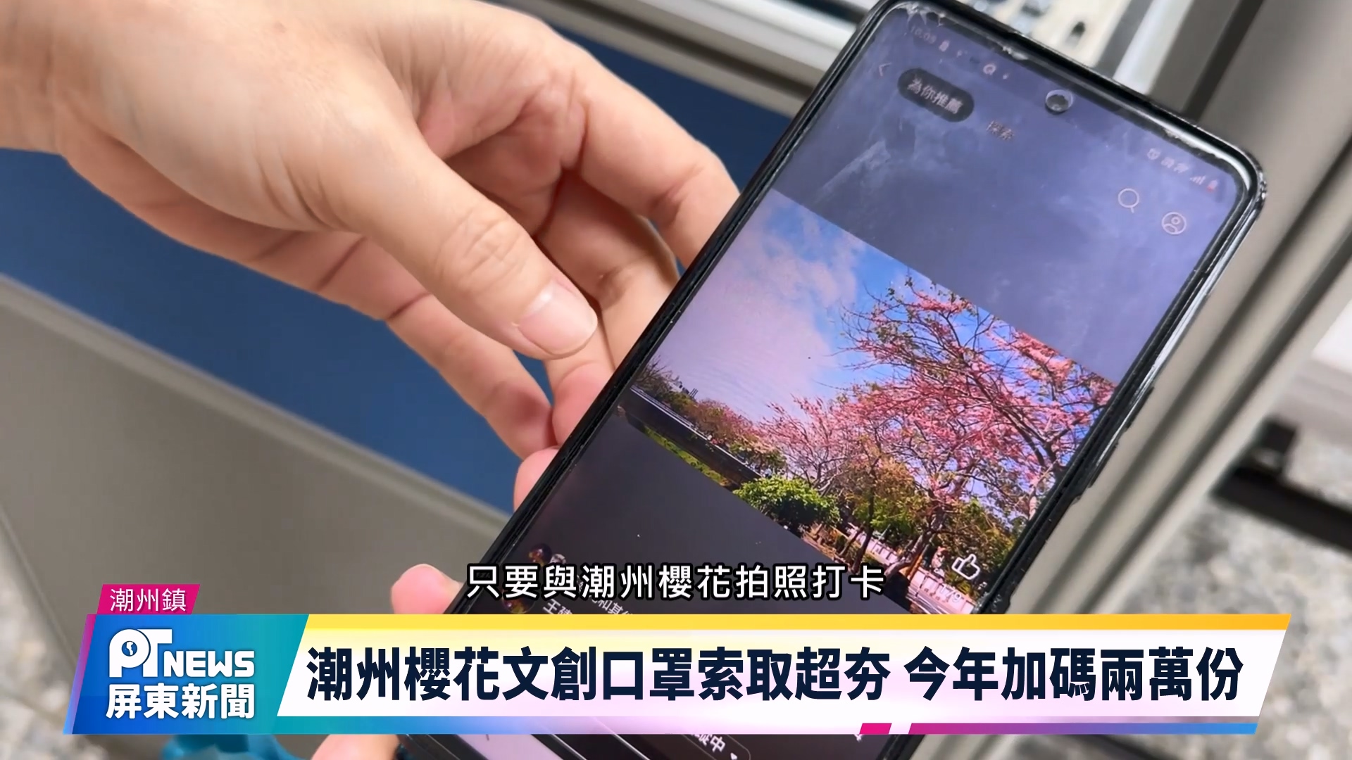 潮州鎮公所2026櫻花季限定口罩,只送不賣,在公所及日式園區,以櫻花打卡照領取,今年加碼製作兩萬份,僅短短三天就發出五千份,公所表示數量有限,送完為止,歡迎鄉親利用花期 踴躍來賞花拍照,把美麗櫻花口罩 給帶回家。