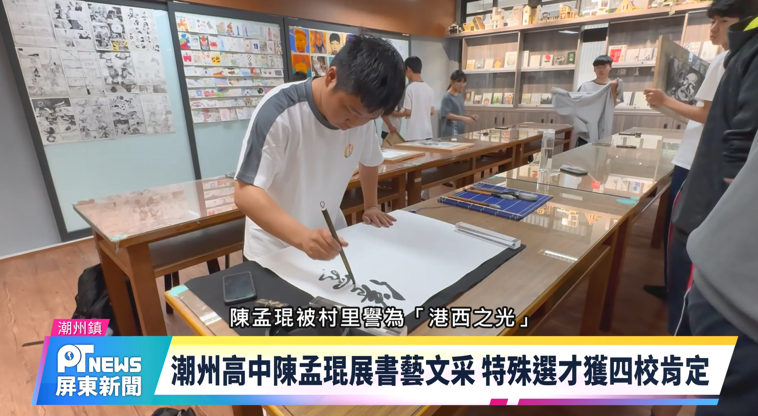 Home / 新聞 / 潮州高中陳孟琨展書藝文采 特殊選才獲四校肯定新聞潮州高中陳孟琨展書藝文采 特殊選才獲四校肯定2026-03-31 潮州高中今年度繁星及特殊選成績亮眼,其中來自新園港西村的陳孟琨,從小在農地寫字,長輩發現其天分,領他向藝文家韋潤之拜師學藝,高中三年獲獎無數,還辦個展及出書,優秀書法能力讓他在特殊選才一口氣入選四所名校。 Share this ArticlePrevious Article萬丹森林公園吸人潮 無公廁民眾反映不方便Next Article原民文化發展中心攜手來義高中 簽署產學合作備忘錄ju.yin Related Posts 清明祭祖 潮州納骨堂光電棚鄉親讚效益高 2026-03-31 原民文化發展中心攜手來義高中 簽署產學合作備忘錄 2026-03-31 萬丹森林公園吸人潮 無公廁民眾反映不方便 2026-03-31 Leave a Reply 取消回覆發佈留言必須填寫的電子郵件地址不會公開。 必填欄位標示為 *Comment顯示名稱 * 電子郵件地址 * 個人網站網址 在瀏覽器中儲存顯示名稱、電子郵件地址及個人網站網址,以供下次發佈留言時使用。