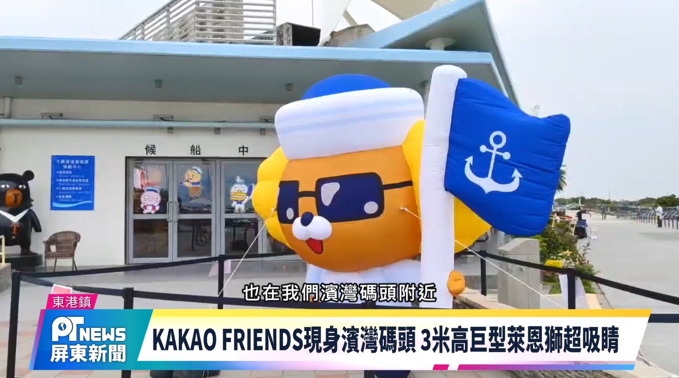 「2026大鵬灣帆船生活節」登場,韓國知名IP KAKAO FRIENDS現身濱灣碼頭,其中高達3米多萊恩獅本人最吸睛,另外還有桃子、醃蘿蔔等KAKAO FRIENDS小夥伴,接藏身在灣域景點內,歡迎遊客踴躍來尋找,一起互動打卡!