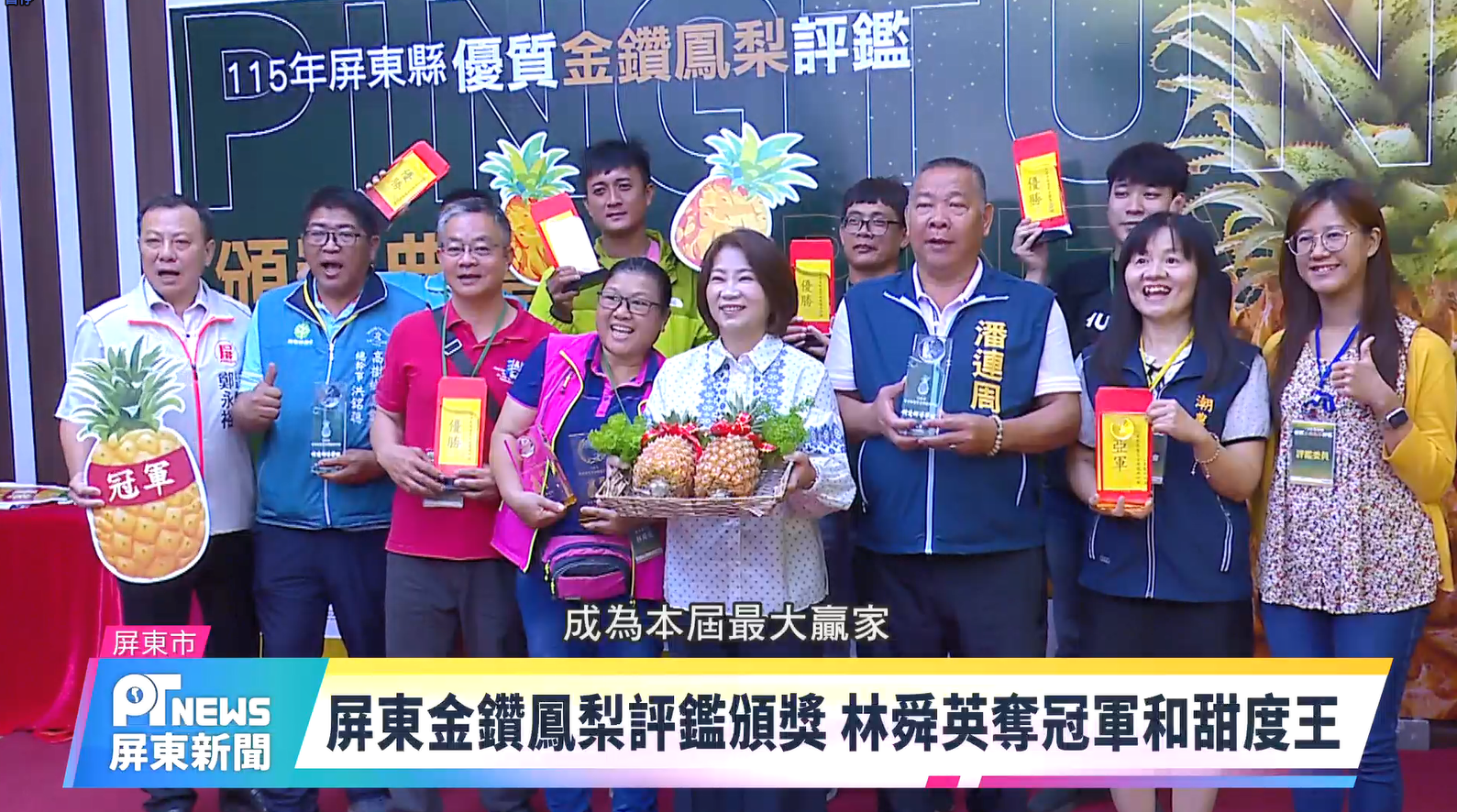 屏東金鑽鳳梨評鑑頒獎 林舜英奪冠軍和甜度王