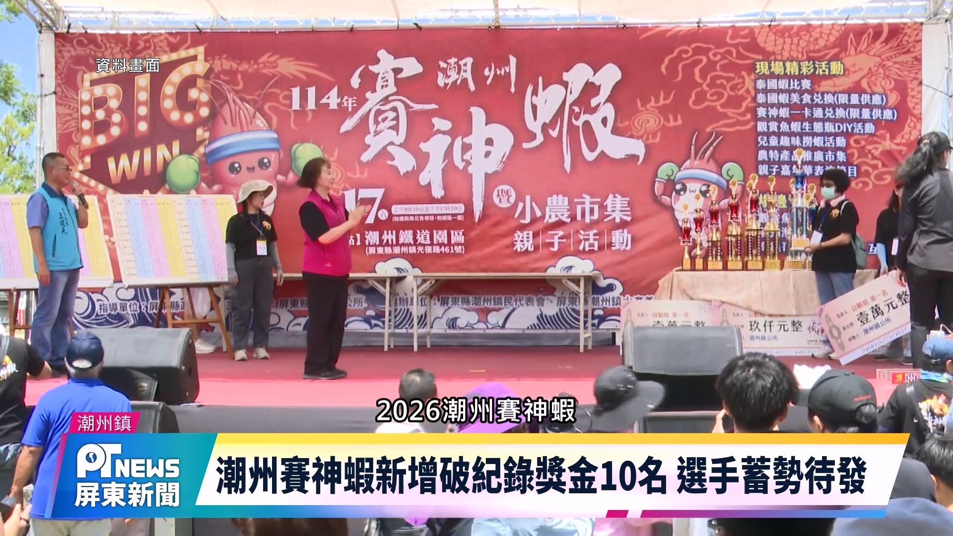 2026潮州賽神蝦活動,預計5月16日,在潮州鐵路文化園區盛大登場,潮州鎮公所公佈報名資訊後,詢問度超高,主要針對今年的破紀錄獎金而來,公所強調由於去年是首次辦理混合組,因此今年特別容易達標,而為了吸引全國好手關注,此次將各個組別新增10名破紀錄者,每名還可另外獲得3000元獎金!