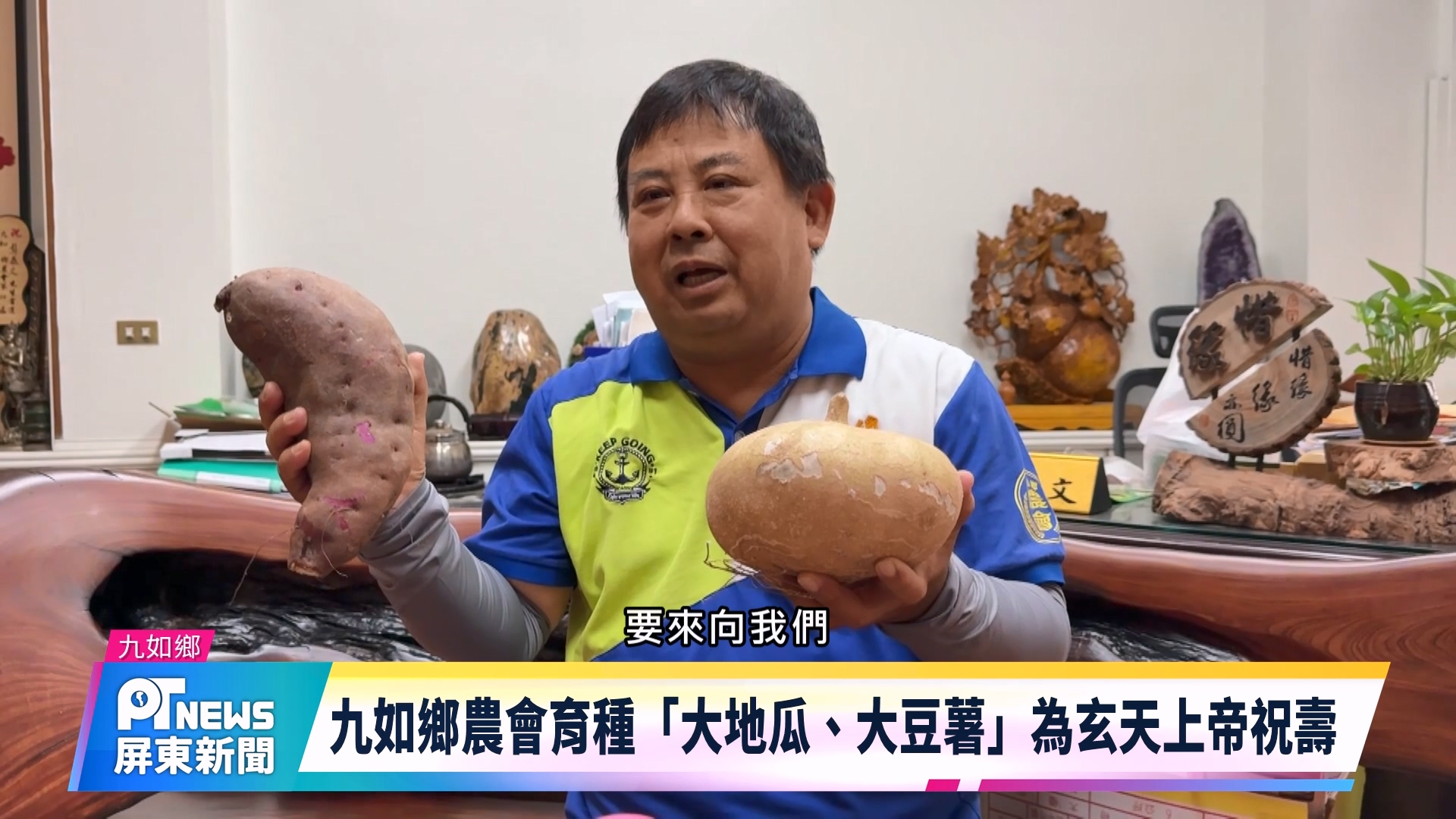 Home / 新聞 / 九如鄉農會育種「大地瓜、大豆薯」為玄天上帝祝壽新聞九如鄉農會育種「大地瓜、大豆薯」為玄天上帝祝壽2026-04-17 屏東縣九如鄉農會第28屆台灣蘭花節,即將在本周末登場,適逢玄天上帝誕辰,農會特別把選育多年、體積比市面品種大三分之二的新品種「九如鄉農會一號地瓜」與大豆薯作為供品祝壽,要在蘭花節煮成地瓜湯分享給蘭友。 Share this ArticlePrevious Article拍片比市政還難 周佳琪挑戰鏡頭母親節勇敢說愛Next Article藍聰信訪玉水社區 讚許居民守望相助護家園tingshih Related Posts 大鵬灣帆船節賽事「百帆齊發」橫渡小琉球週末登場 2026-04-17 沁涼「水上樂園」濱灣碼頭登場 親子同遊嗨玩水 2026-04-17 藍聰信訪玉水社區 讚許居民守望相助護家園 2026-04-17 Leave a Reply 取消回覆發佈留言必須填寫的電子郵件地址不會公開。 必填欄位標示為 *Comment顯示名稱 * 電子郵件地址 * 個人網站網址 在瀏覽器中儲存顯示名稱、電子郵件地址及個人網站網址,以供下次發佈留言時使用。