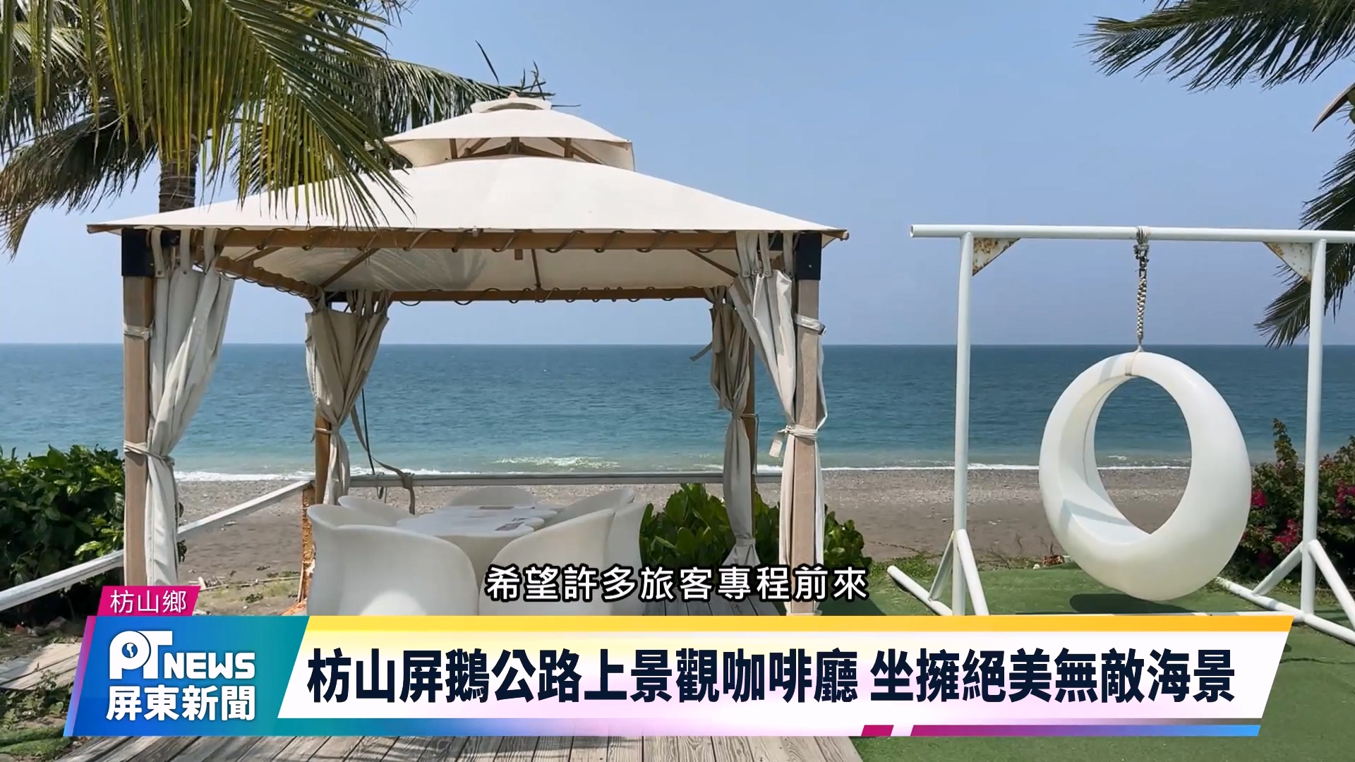 Home / 新聞 / 枋山屏鵝公路上景觀咖啡廳 坐擁絕美無敵海景新聞枋山屏鵝公路上景觀咖啡廳 坐擁絕美無敵海景2026-04-23 屏東枋山一帶,近年成為熱門海景咖啡勝地,其中有家網路上討論度極高的海景咖啡廳,以180度露天面海景觀,加上可愛IG網美打卡設施聞名,坐擁遼闊藍色海岸、絕佳觀景視野、超愜意浪漫的沙灘裝置藝術等,成為旅人心中最驚喜的休憩站。 Share this ArticlePrevious Article高鐵屏東特定區逐漸成形 打造南台灣科技新都心Next Article屏東縣啟動地籍圖數位重測 落實土地產權保障tingshih Related Posts 潮州鎮長春二巷瓶頸路段工程 將拓寬開闢8米道路 2026-04-23 屏東大學產學聯手助攻 徐可倢勇闖歐洲網壇 2026-04-23 「屏東旅遊購GO節」超狂開跑 住宿有機會抽百萬汽車 2026-04-23 Leave a Reply 取消回覆發佈留言必須填寫的電子郵件地址不會公開。 必填欄位標示為 *Comment顯示名稱 * 電子郵件地址 * 個人網站網址 在瀏覽器中儲存顯示名稱、電子郵件地址及個人網站網址,以供下次發佈留言時使用。