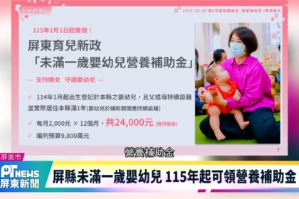 新聞屏縣未滿一歲嬰幼兒 115年起可領營養補助金屏東縣長周春米在縣議會施政總報告時祭出育兒新政,宣布自115年1月起將推動「未滿一歲嬰幼兒營養補助金」,每名嬰...hedy.pu2025-10-31 Read More
