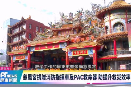 新聞慈鳳宮捐贈消防指揮車及PAC救命器 助提升救災效率為提升消防救災效率,財團法人屏東市慈鳳宮捐贈屏東縣政府消防局防救災指揮車及整合式PAC救命器,總價近500萬元...hedy.pu2026-01-15 Read More