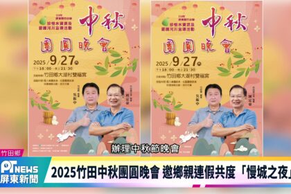 新聞2025竹田中秋團圓晚會 邀鄉親連假共度「慢城之夜」為陪伴鄉親迎中秋、歡度佳節,竹田鄉公將於9月27日,在竹田大湖村雙福宮,辦理盛大的2025竹田鄉中秋節團圓晚會...hedy.pu2025-09-15 Read More