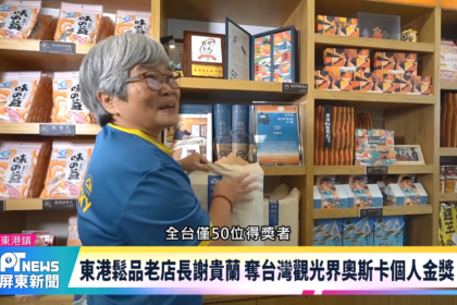 新聞東港鬆品老店長謝貴蘭 奪台灣觀光界奧斯卡個人金獎東港老字號鬆品店的店長-謝貴蘭,榮獲今年度才剛頒布的交通部觀光署,台灣觀光界奧斯卡獎「台灣觀光金獎」肯定,且是...ju.yin2026-01-06 Read More