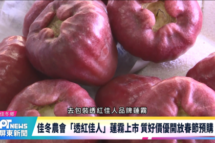 新聞佳冬農會「透紅佳人」蓮霧上市 質好價優開放春節預購佳冬鄉著名的國宴等級「透紅佳人」蓮霧,陸續採收上市,今年不僅量產豐富、果品佳,甜度等級也相當高,目前農會正大量...ju.yin2026-01-06 Read More