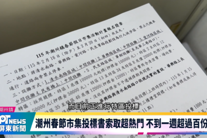 新聞潮州春節市集投標書索取超熱門 不到一週超過百份屏東縣潮州鎮春節市集,強打120小時「不夜城」模式,是全台相當知名的走春熱點,然而隨著市集超夯,今年投標量也是...ju.yin2026-01-08 Read More