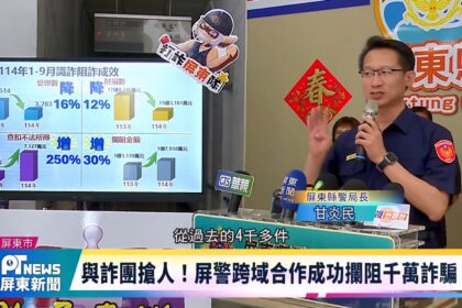 新聞與詐團搶人!屏警跨域合作成功攔阻千萬詐騙屏東縣警察局推動「與詐團搶人」防詐策略,攜手宗教、金融與企業界,成功攔阻詐騙案件,守住民眾近4億元財產。縣警局...tingshih2025-10-30 Read More