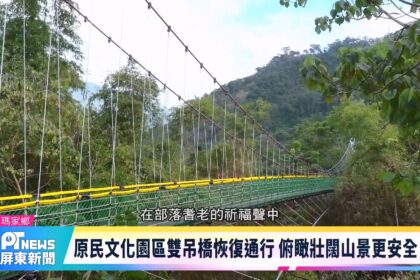 新聞原民文化園區雙吊橋恢復通行 俯瞰壯闊山景更安全原住民文化園區是春節遊客走春的熱門景點,園區內的指標性景點彩虹橋「一號吊橋及二號吊橋觀流橋在整修後已正式通橋,...tingshih2026-01-29 Read More
